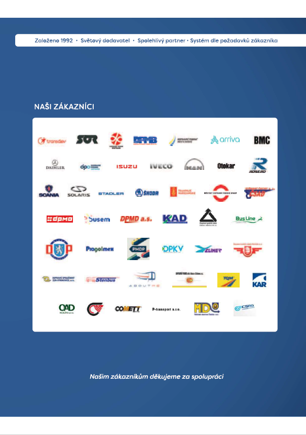 V autobusech, v tramvajích, ve vlacích, na zastávkách a nástupištích nebo v řídicích centrech jsou výrobky a systémy firmy BUSE ceněny pro svoji spolehlivost, odolnost a dlouhou životnost.