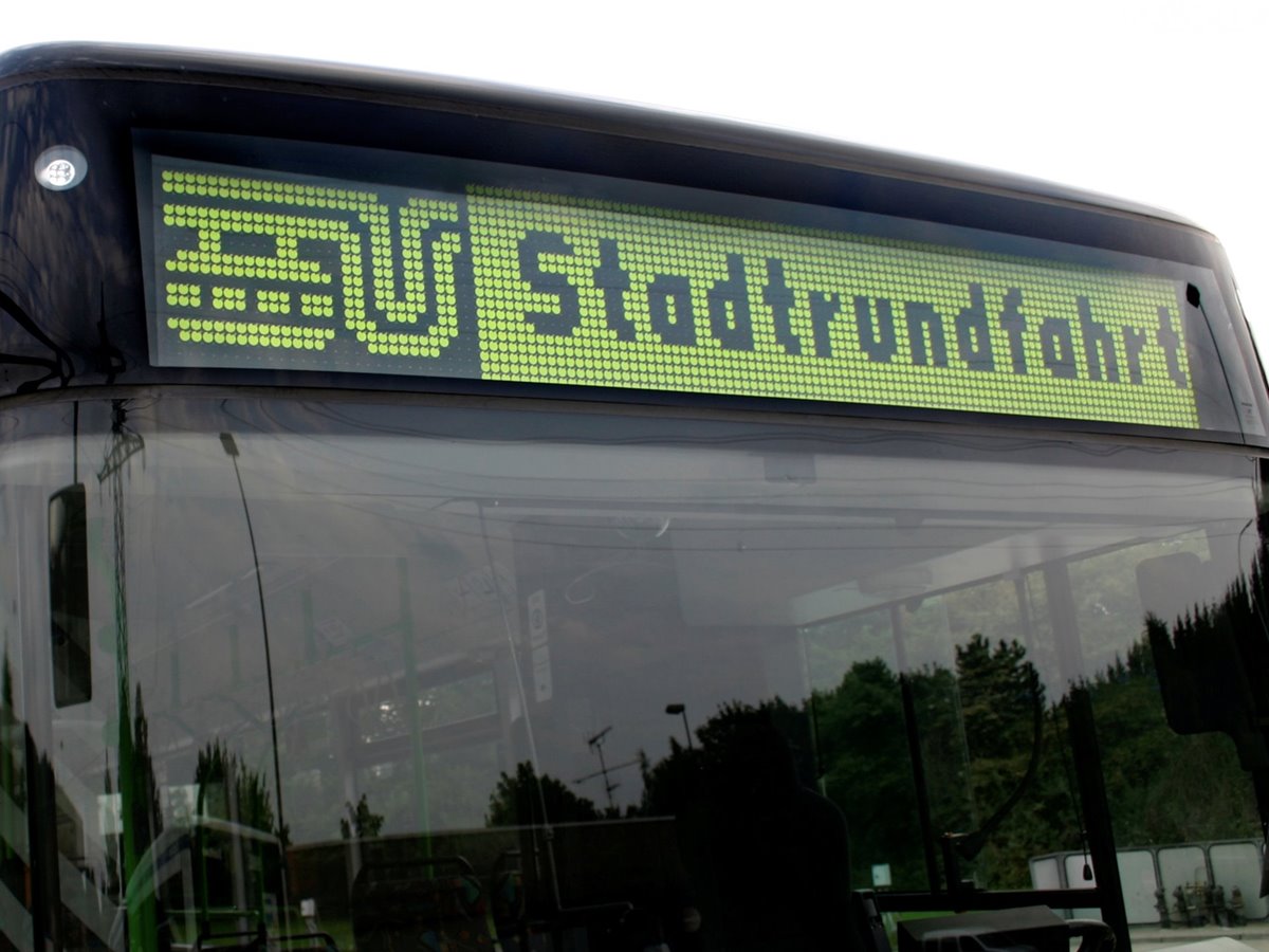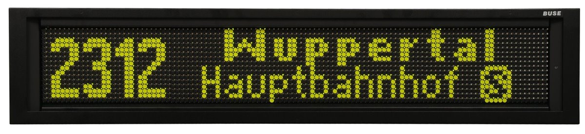 Flip DOT-LED signs with BUSE’s proprietary DOT-LED technology of electromagnetic elements with a fluorescent or retroreflective colour foil accompanied by a LED. This display technology offers optimal readability and equal text indication on the sign surface in all light conditions. The text remains displayed on the sign after power cut-off. The power is needed only for changing the text and illumination – it is a passive display technology. An extremely low power consumption of DOT-LED signs reduces the requirements on vehicle electrical network dimensioning and reduces power or diesel consumption. A bus equipped with DOT-LED signs consumes less than 200 litres diesel a year than a bus equipped with LED technology.