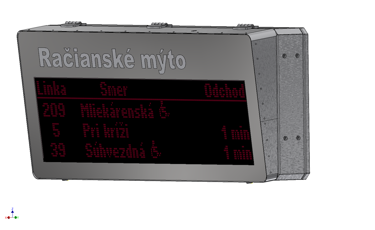 Enhanced security in front of the sign is ensured by an in-built IP camera with a remote image transmission, by a vibration sensor and a sensor signalising sign opening. Toughened glass with a foil prevents mechanical damage of the sign electronics. An in-built accumulator keeps the sign in operation in case of power failure. In the basic line we offer the following signs: